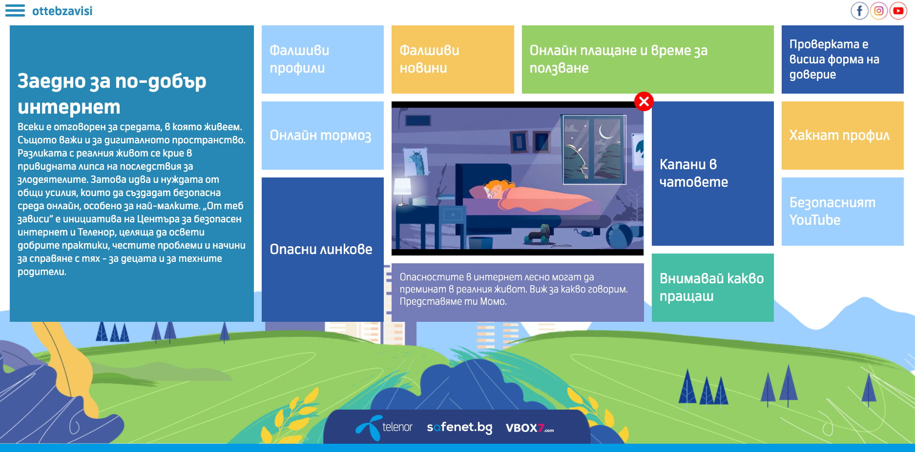 Inteactive site elaborating on the different abuses one experience in the Internet. Celebration of the international Safer Internet Day 2020.